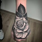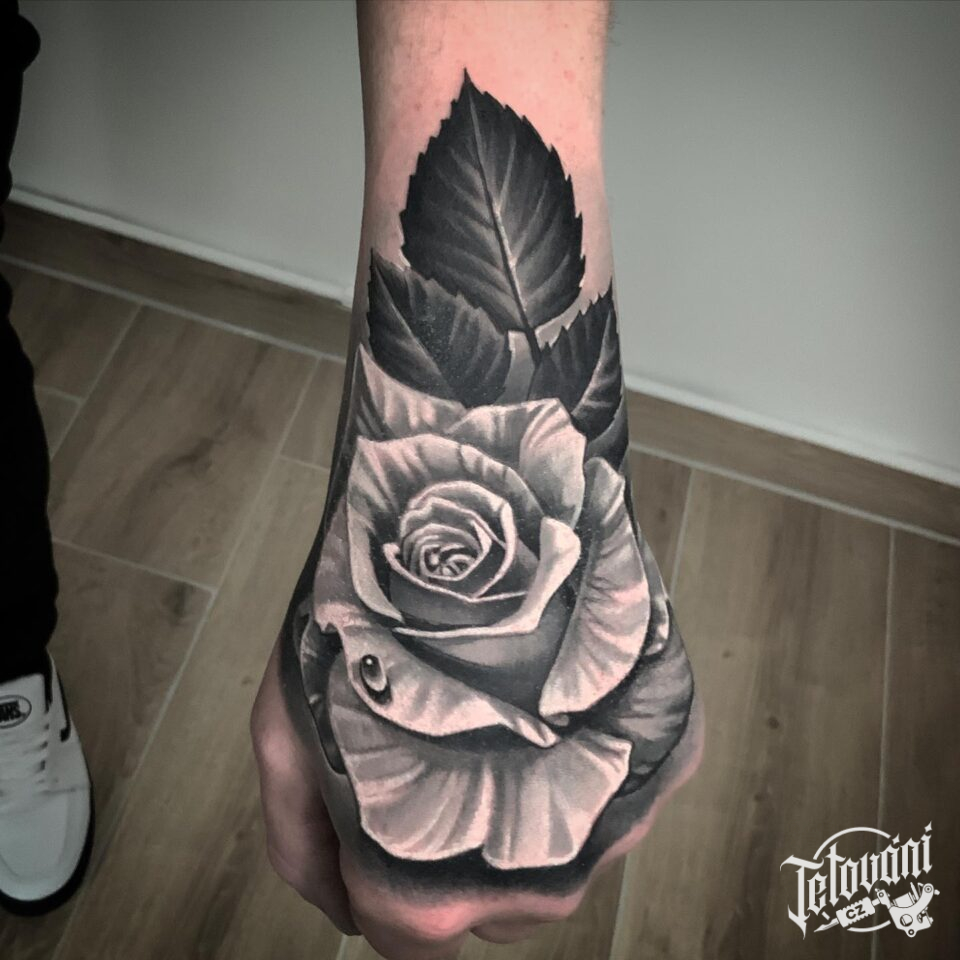 Tetování květina, růže na hřbetu ruky