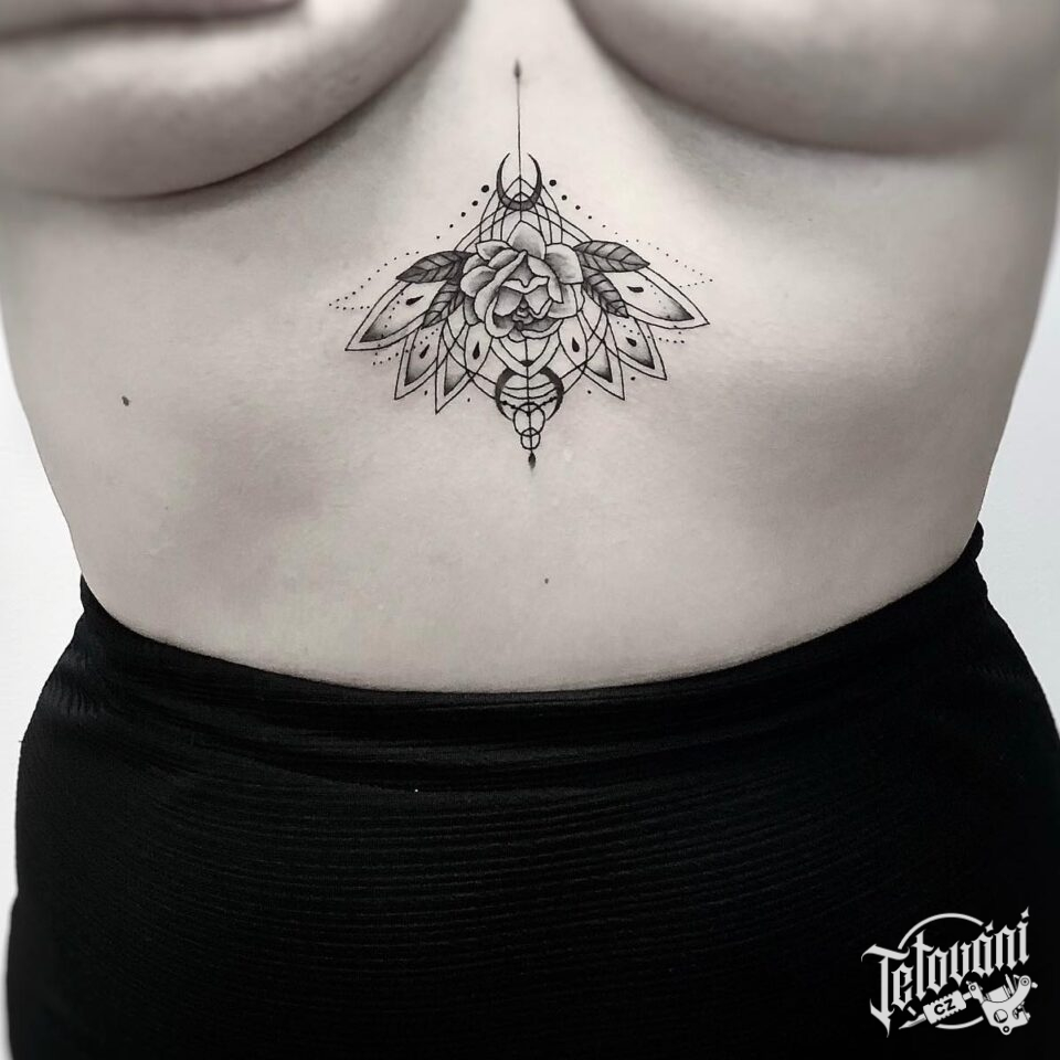 Tetování květina růže na hrudník, ornamenty