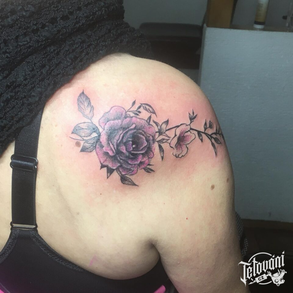 Tetování květina, růže na lopatce