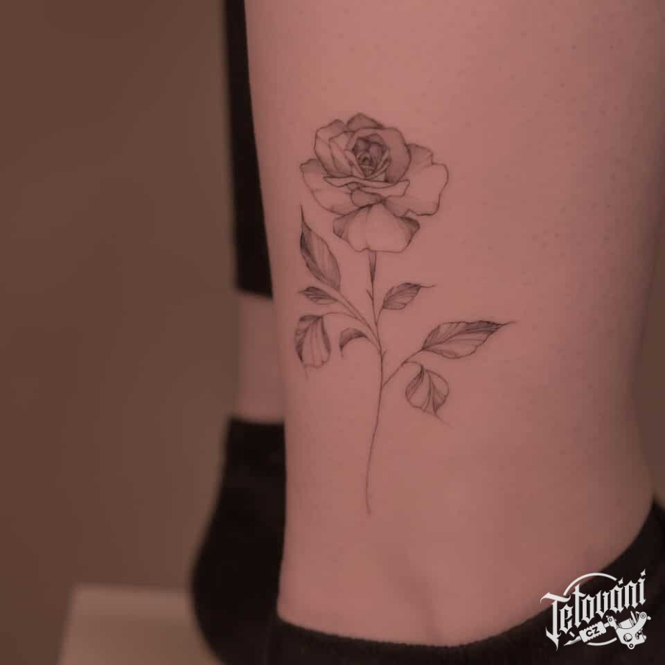 Tetování květina růže na lýtko