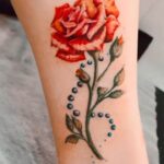 Tetování květina, růže na lýtku