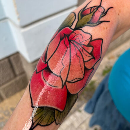 Tetování květina, růže na noze