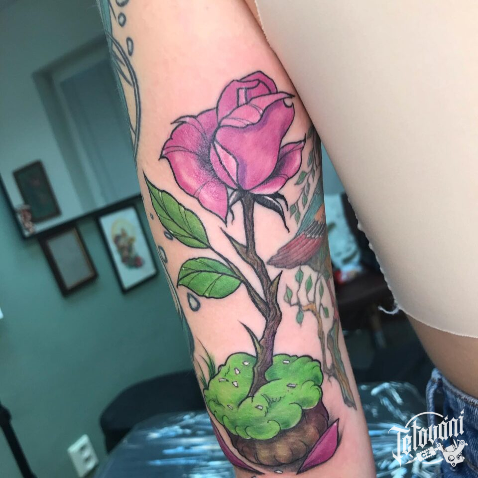 Tetování květina, růže na paži