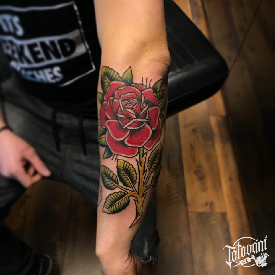 Tetování květina, růže na předloktí