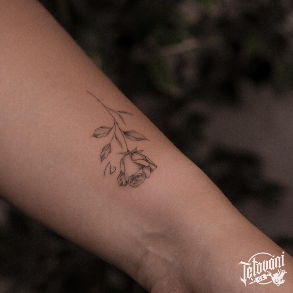Tetování květina růže na předloktí