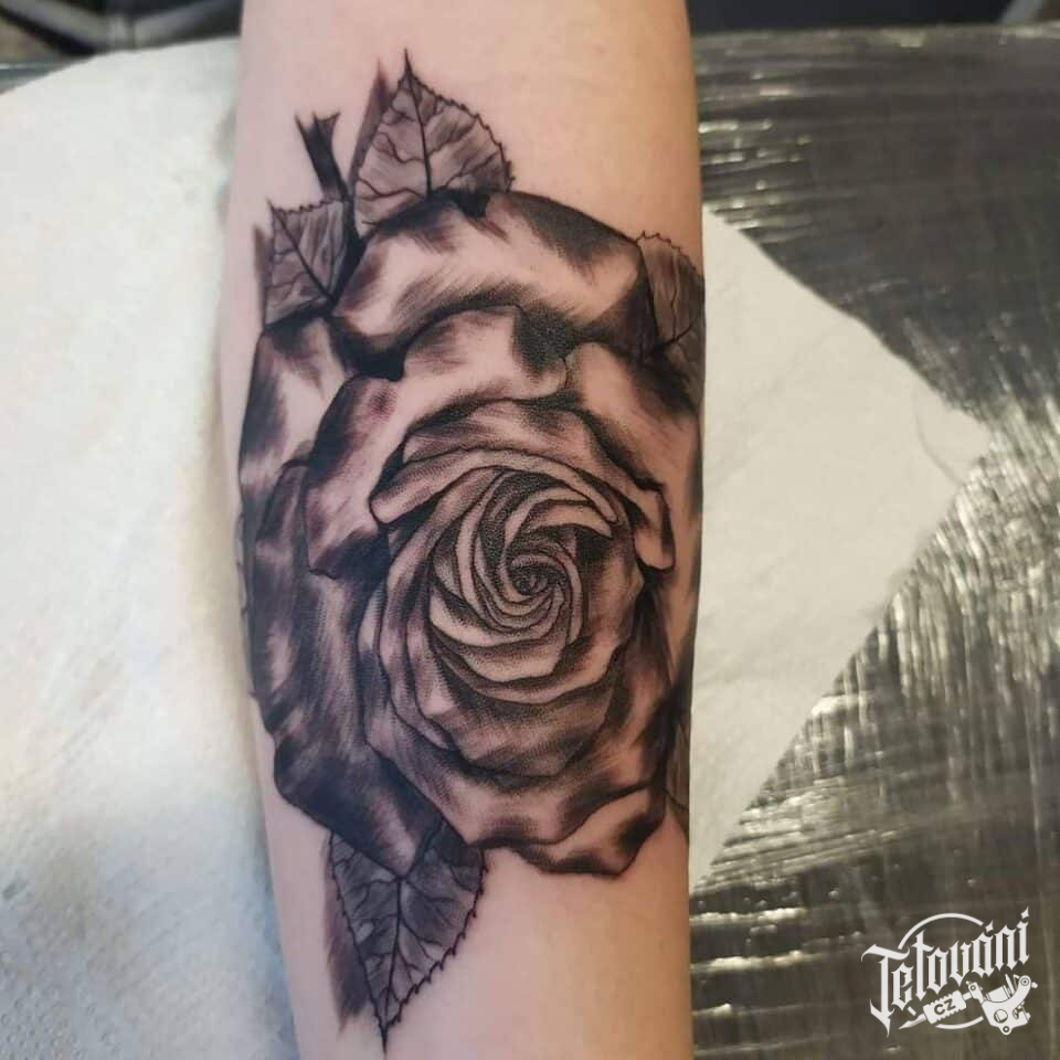 Tetování květina růže na předloktí