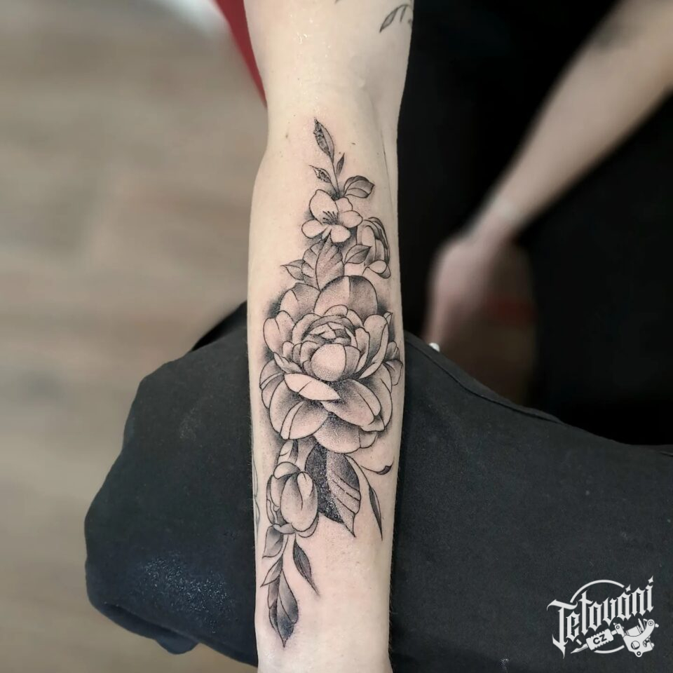 Tetování květina, růže na předloktí