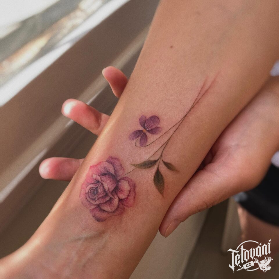 Tetování květina růže na předloktí