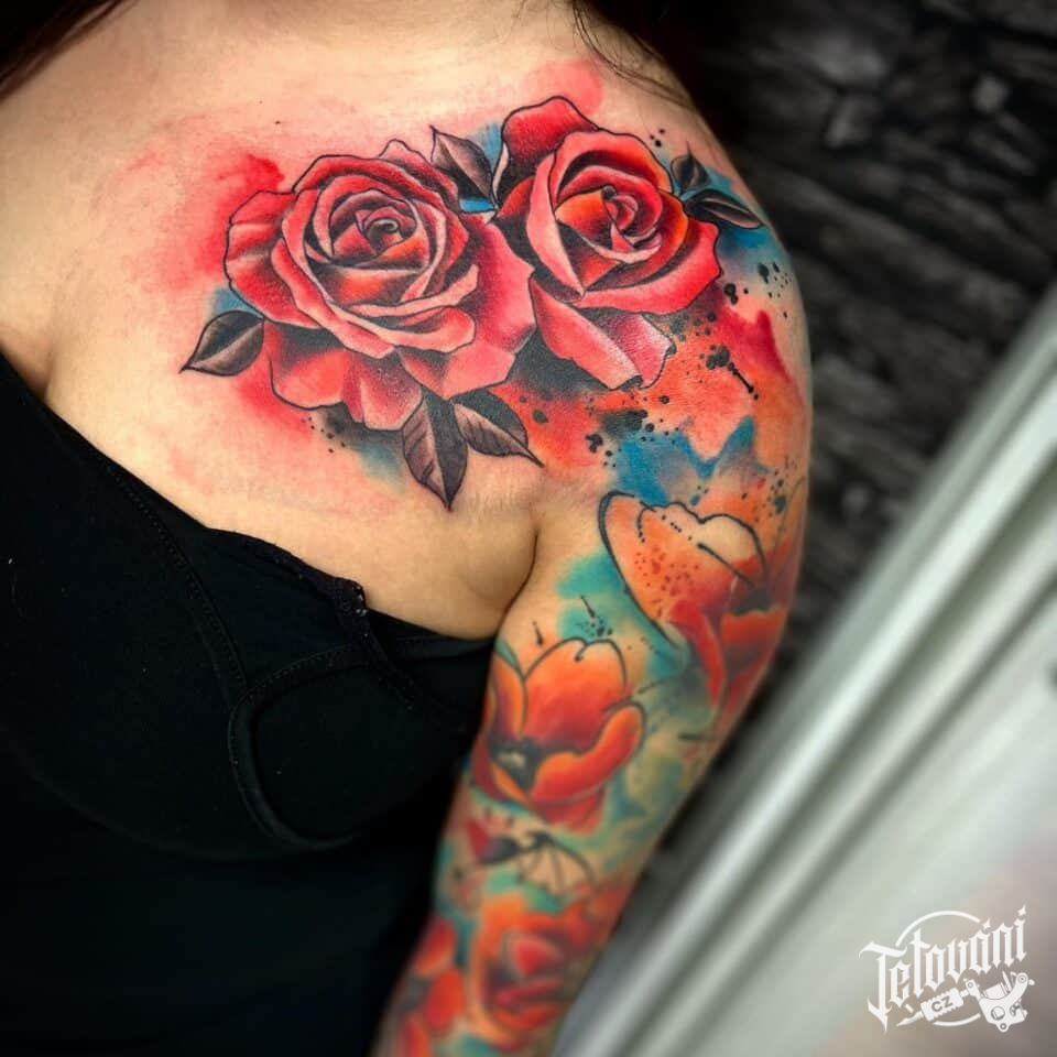 Tetování květina růže na rameno