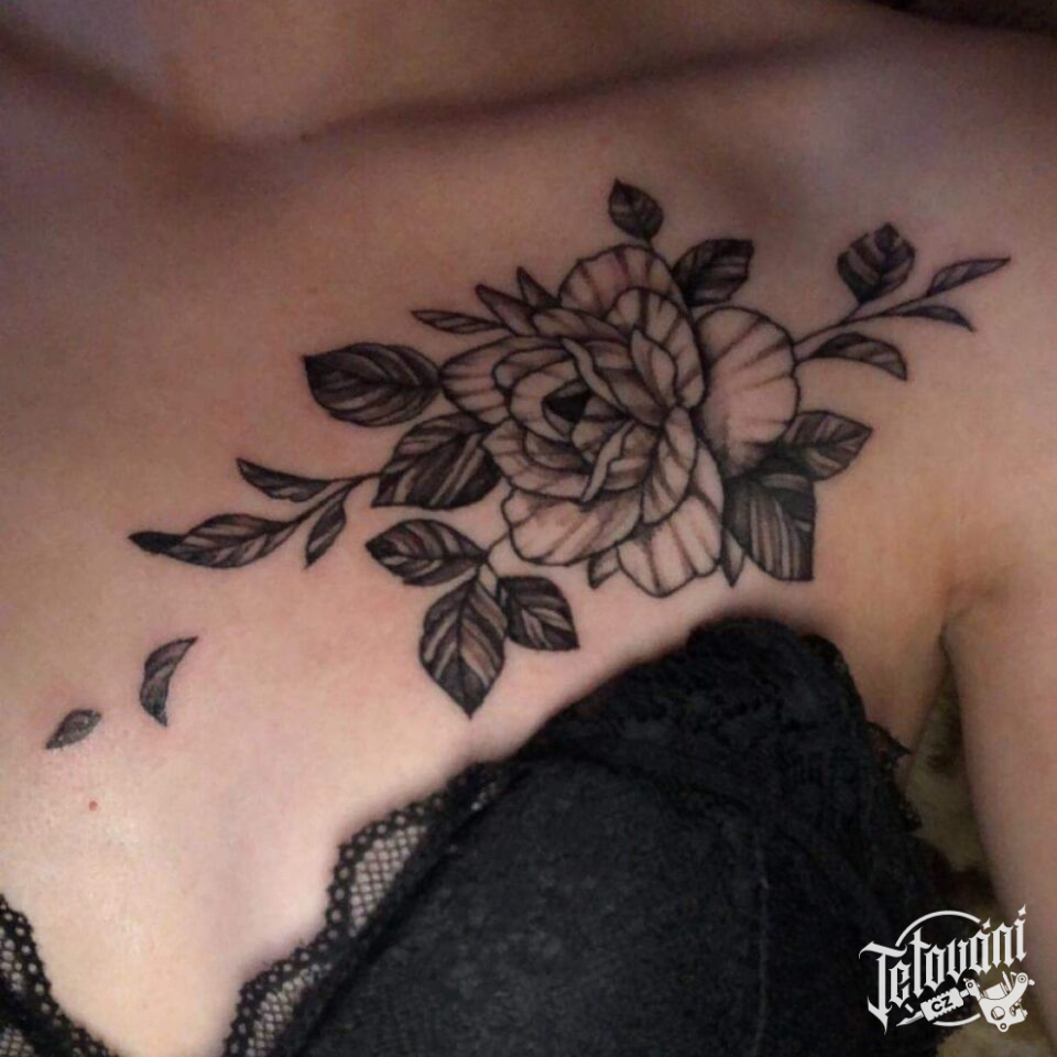 Tetování květina, růže pod klíční kost