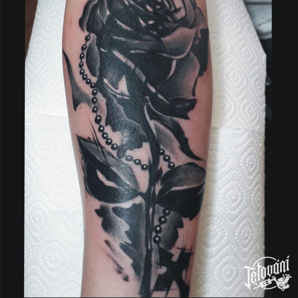 Tetování květina, růže, růženec na předloktí