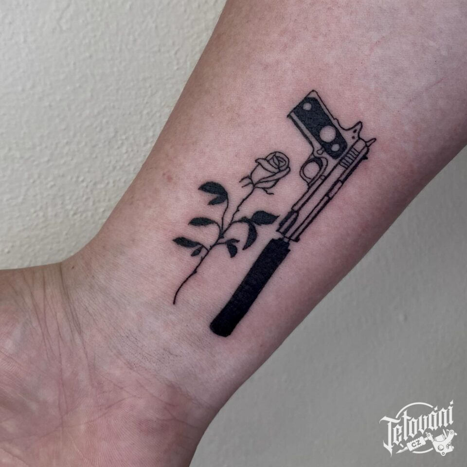 Tetování květina, růže, znaky a symboly na předloktí
