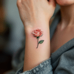 Tetování květina, růžová malá růže na zápěstí