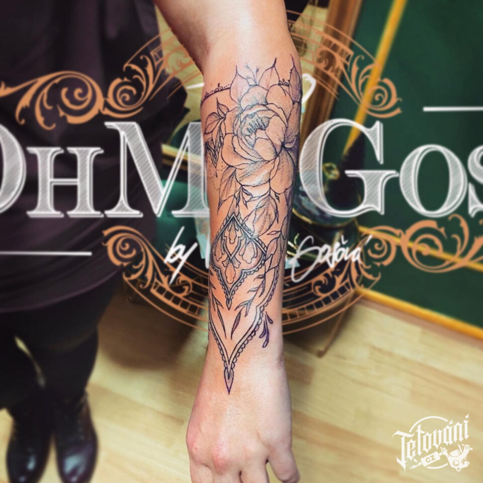 Tetování květina s ornamentem na předloktí