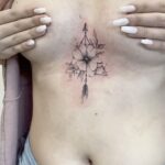 Tetování květina s šípem mezi prsy
