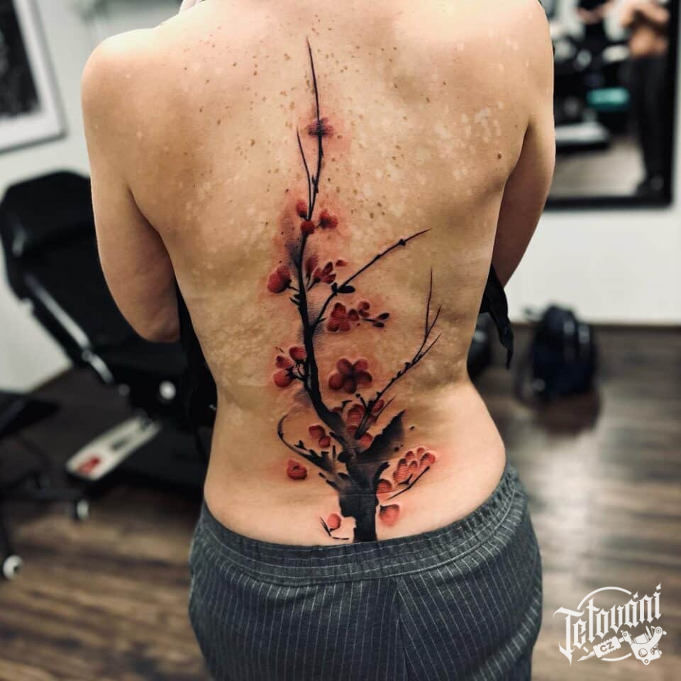 Tetování květina Sakura na záda