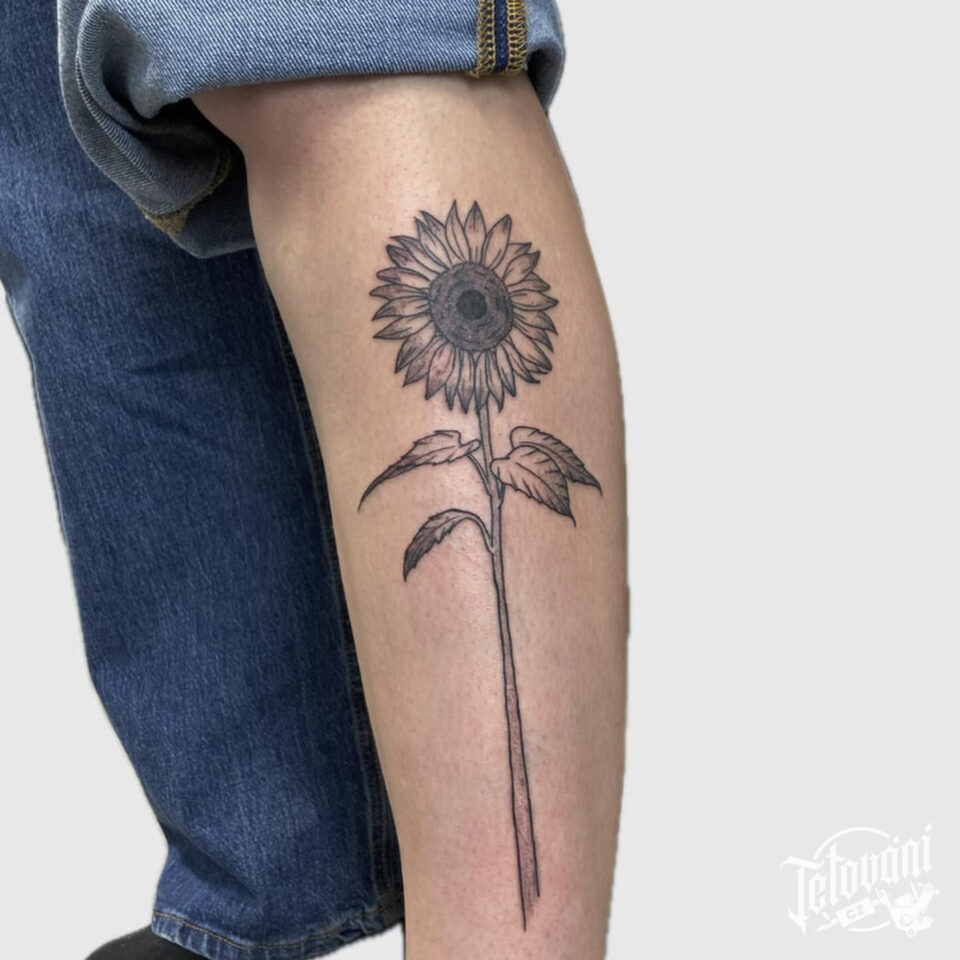 Tetování květina, slunečnice na holeni