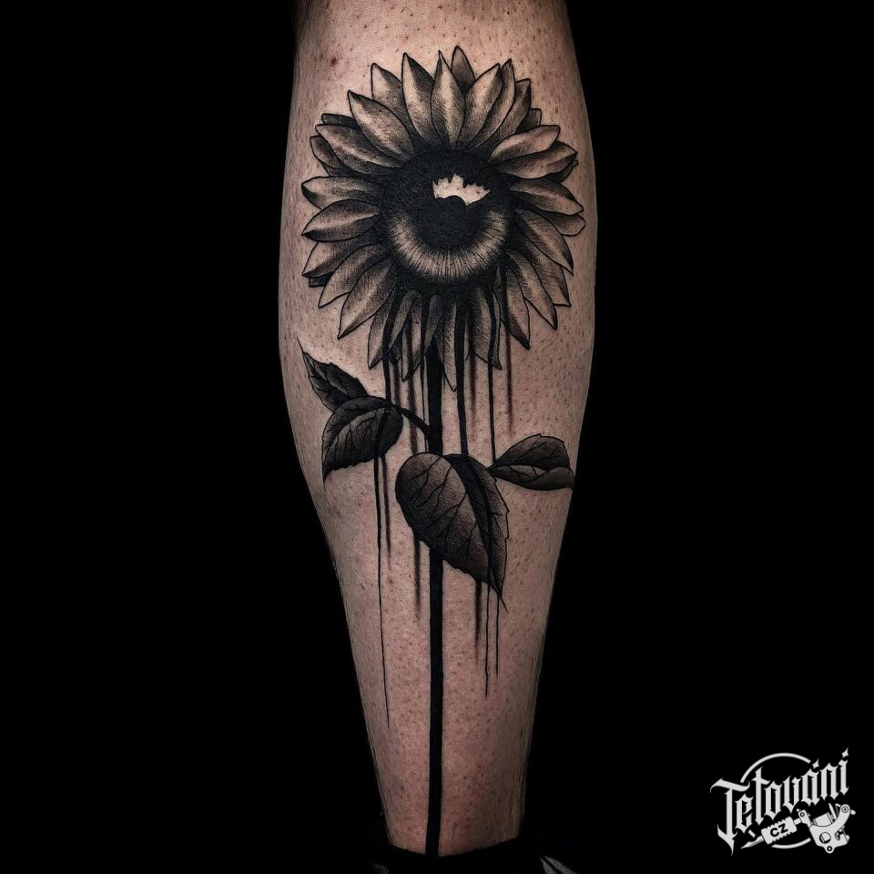 Tetování květina slunečnice na lýtko