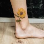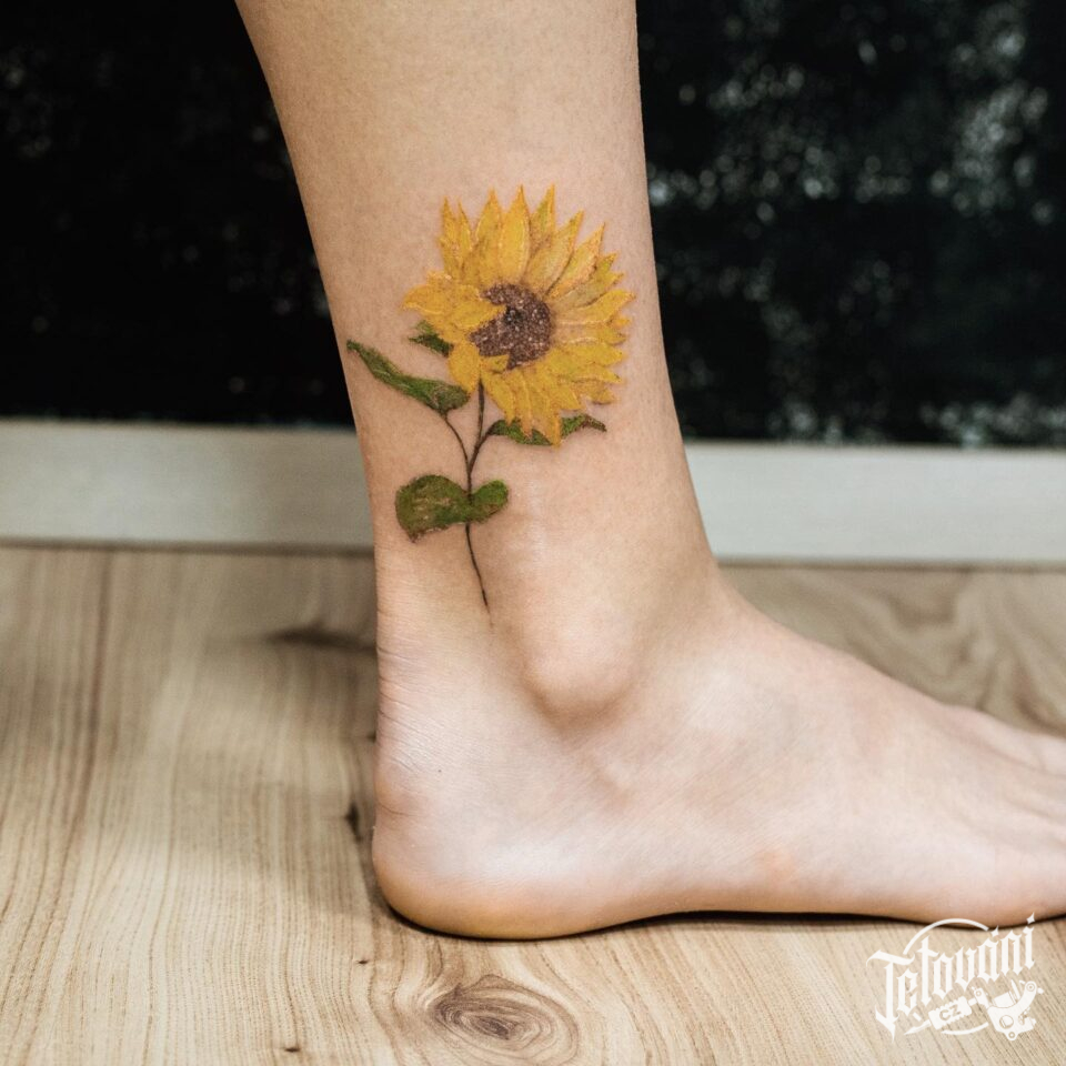 Tetování květina, slunečnice na noze