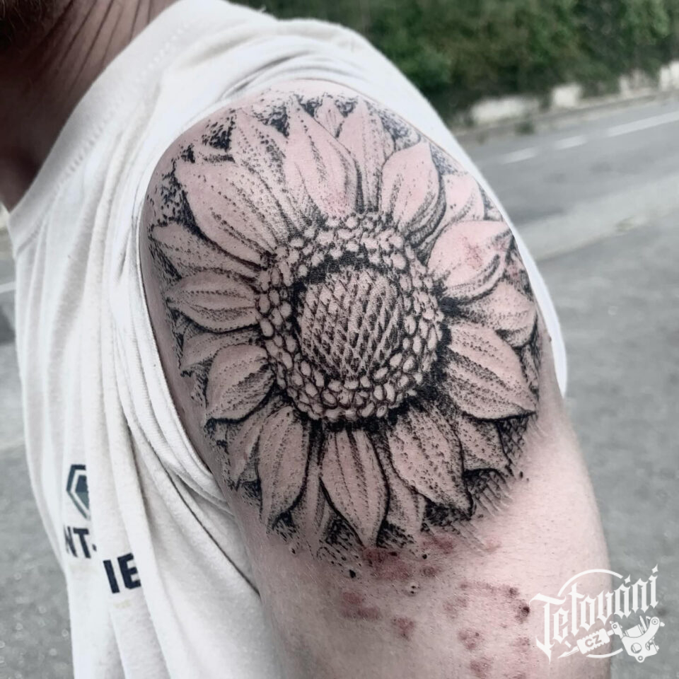 Tetování květina, slunečnice na rameni