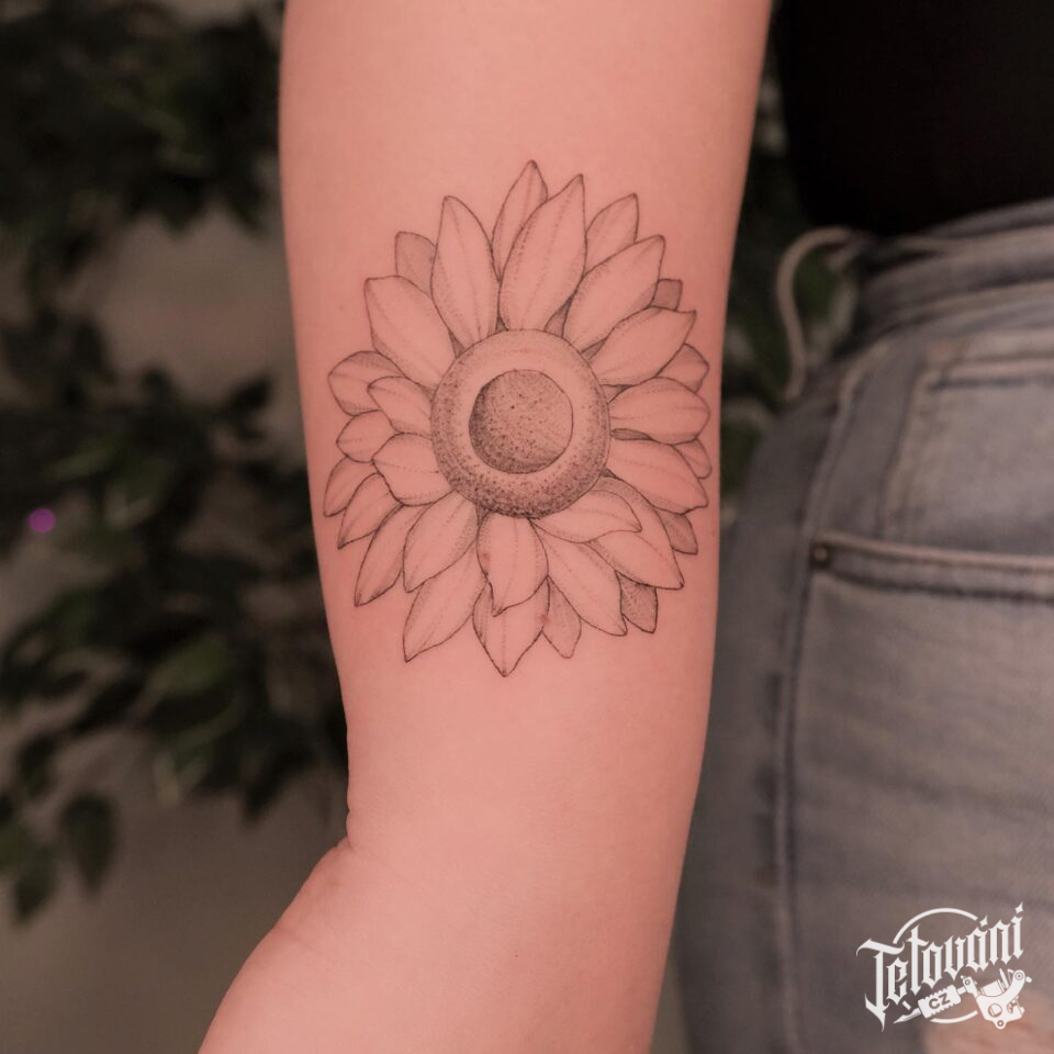 Tetování květina slunečnice na rameno