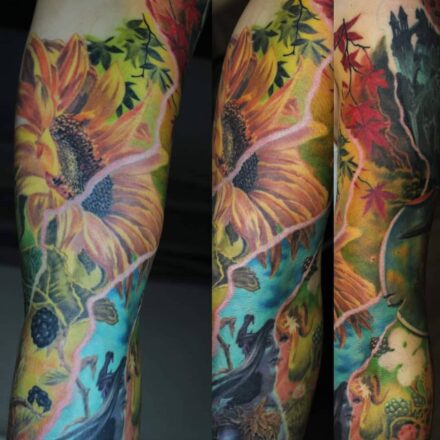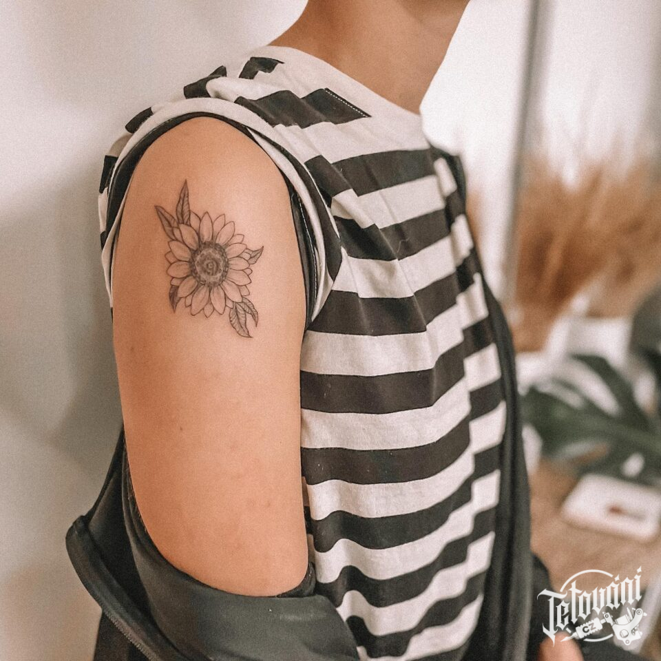 Tetování květina, slunečnice na rameno
