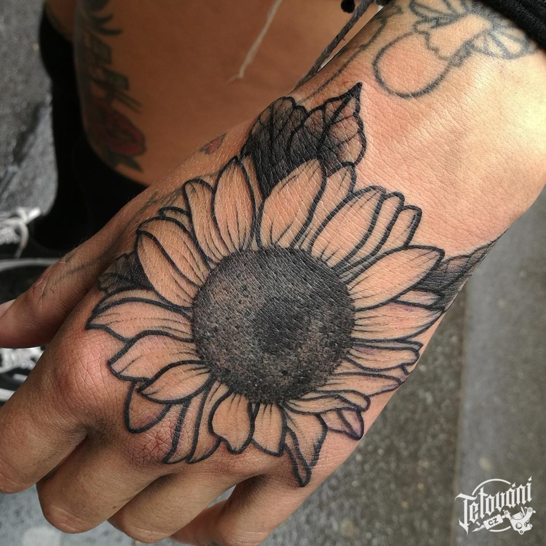 Tetování květina, slunečnice, rukáv