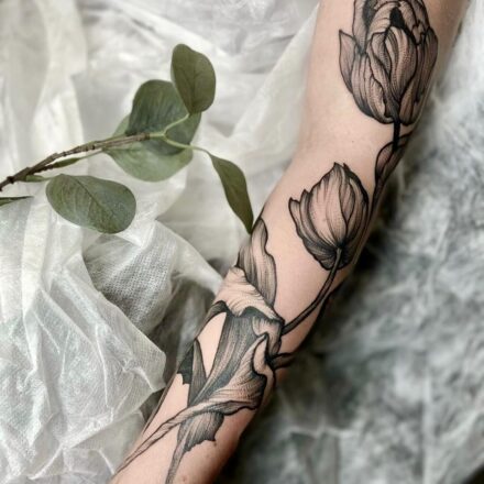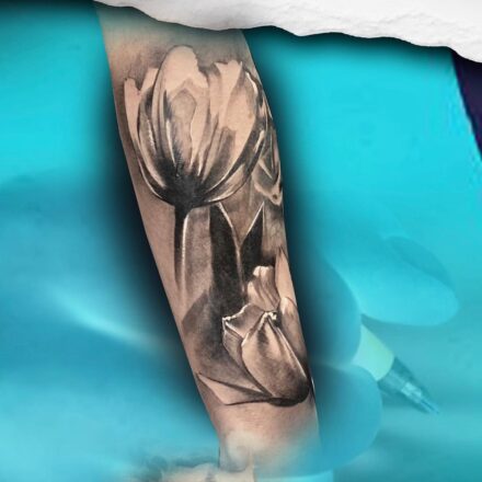 Tetování květina, tulipán na boku