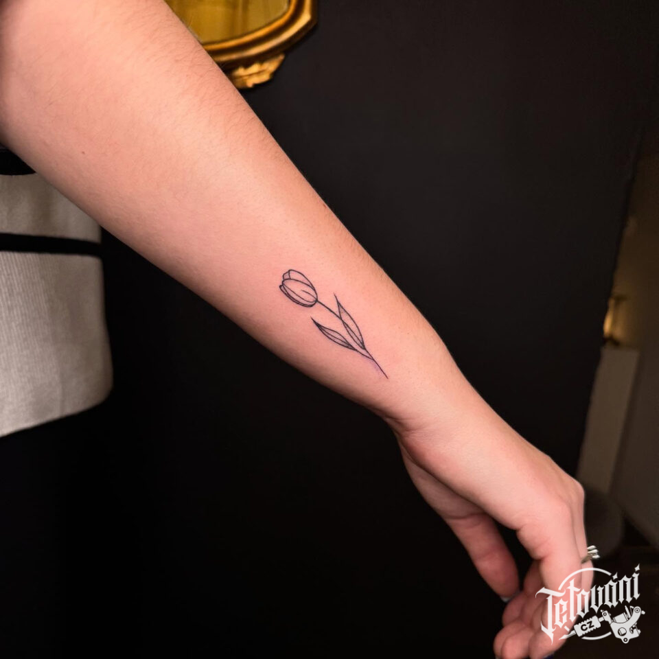 Tetování květina, tulipán na předloktí