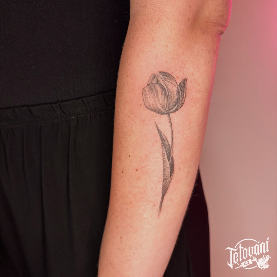 Tetování květina, tulipán na předloktí