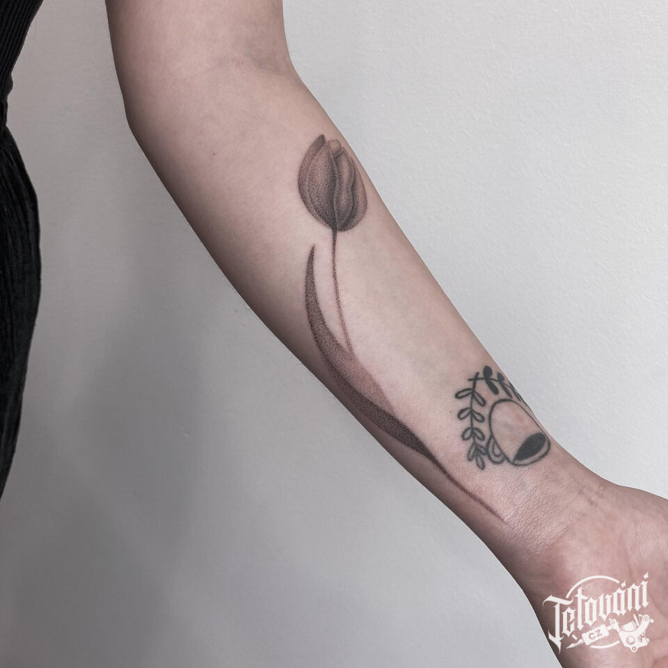 Tetování květina, tulipán na předloktí