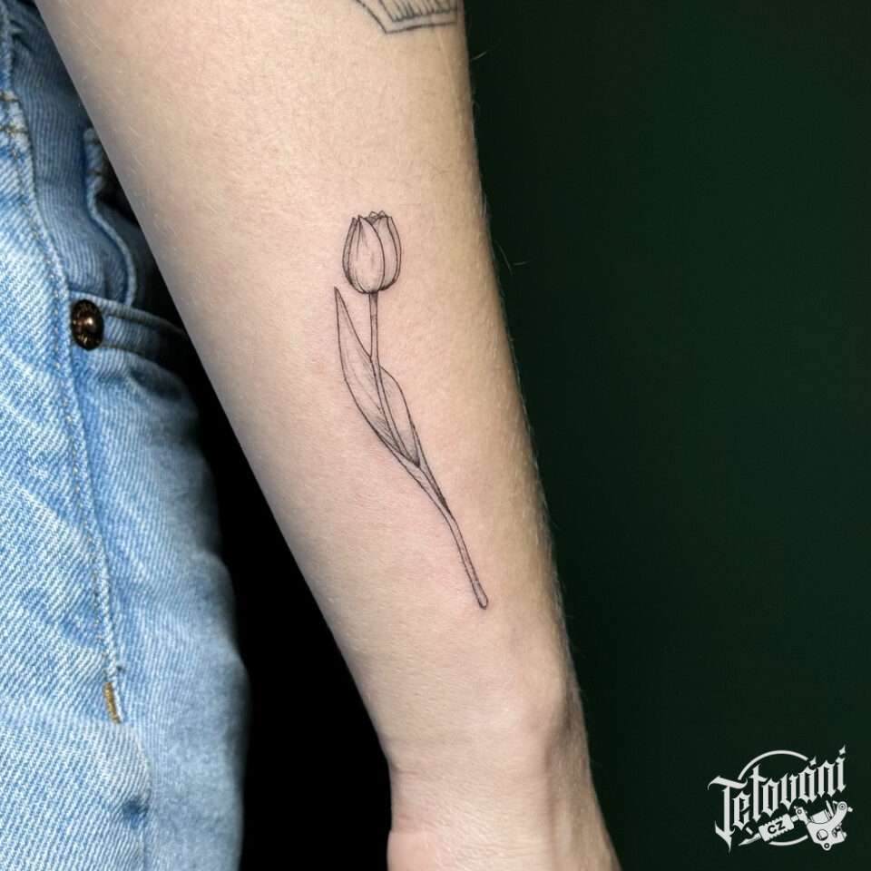 Tetování květina, tulipán na předloktí