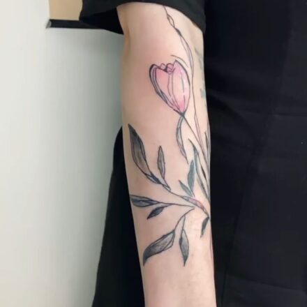 Tetování květina, tulipán na předloktí