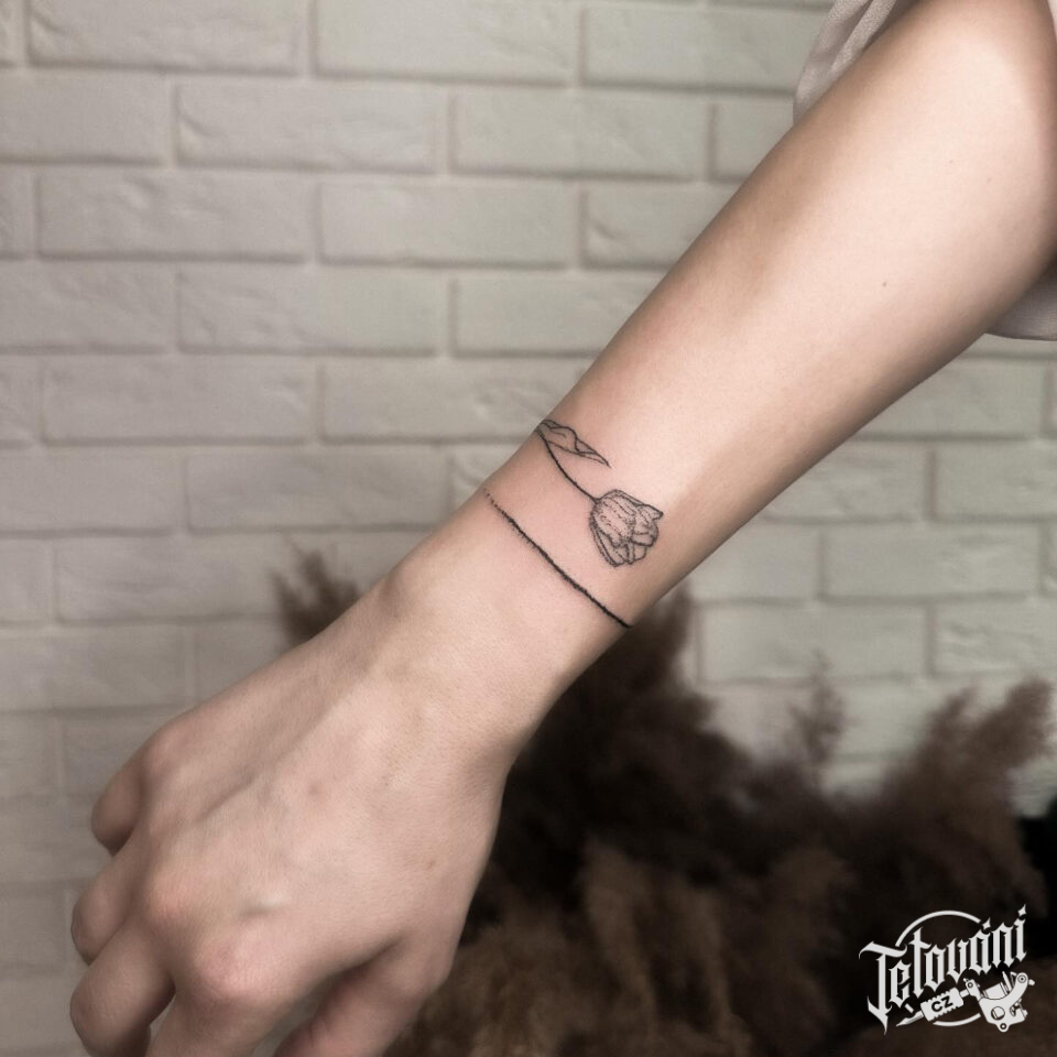 Tetování květina tulipán na zápěstí