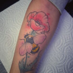 Tetování květina, vlčí mák a zvíře, včela na předloktí