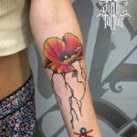 Tetování květina vlčí mák, čáry na předloktí
