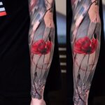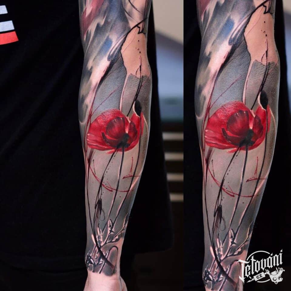 Tetování květina vlčí mák, čáry na předloktí