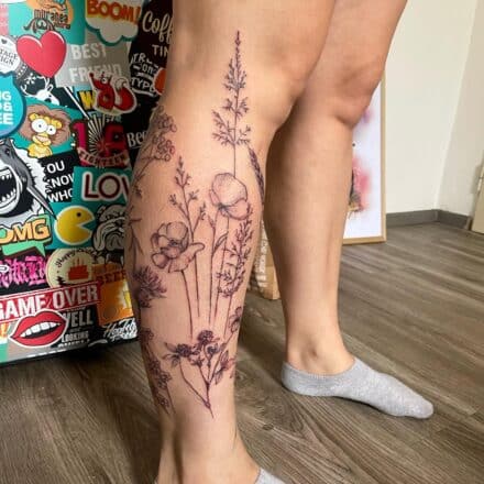 Tetování květina vlčí mák, čáry na rameno
