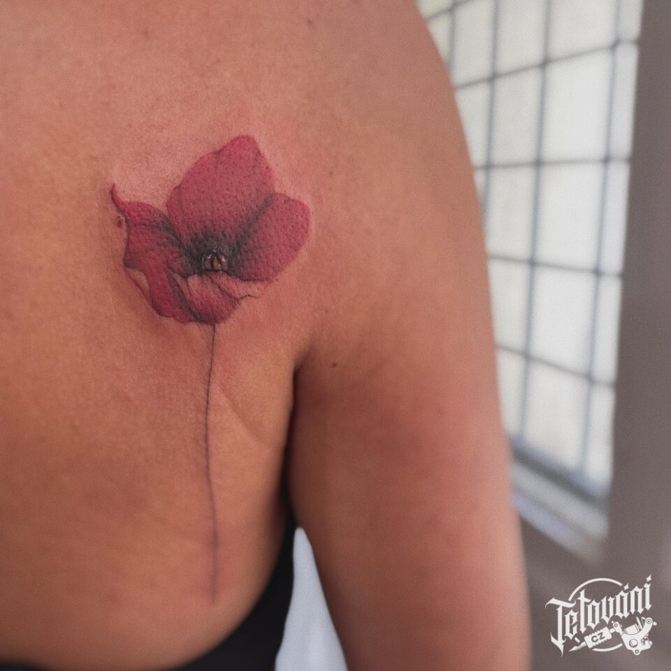 Tetování květina vlčí mák na lopatku