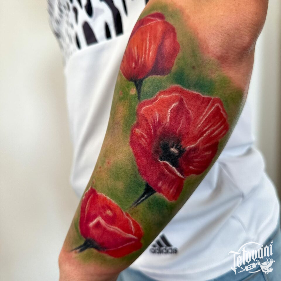 Tetování květina vlčí mák na předloktí
