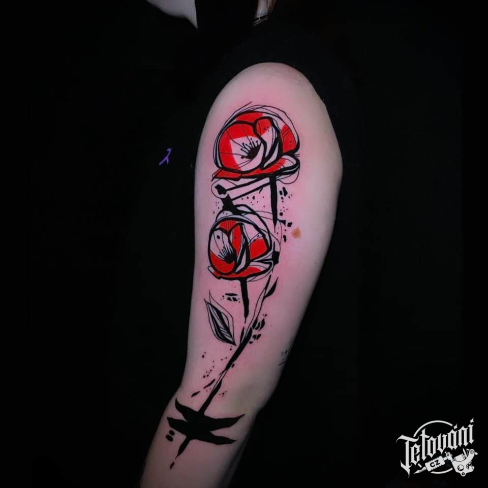 Tetování květina, Vlčí mák na rameno