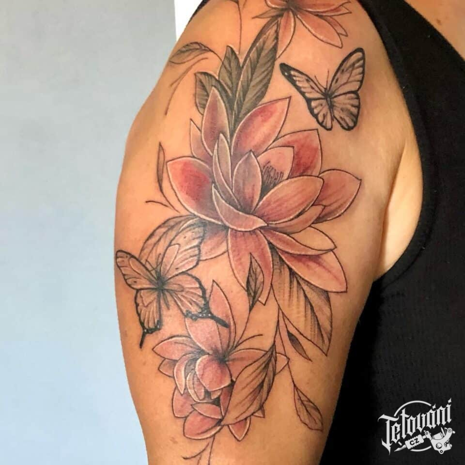 Tetování květina zvíře motýl na rameno