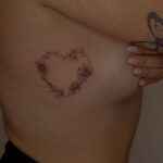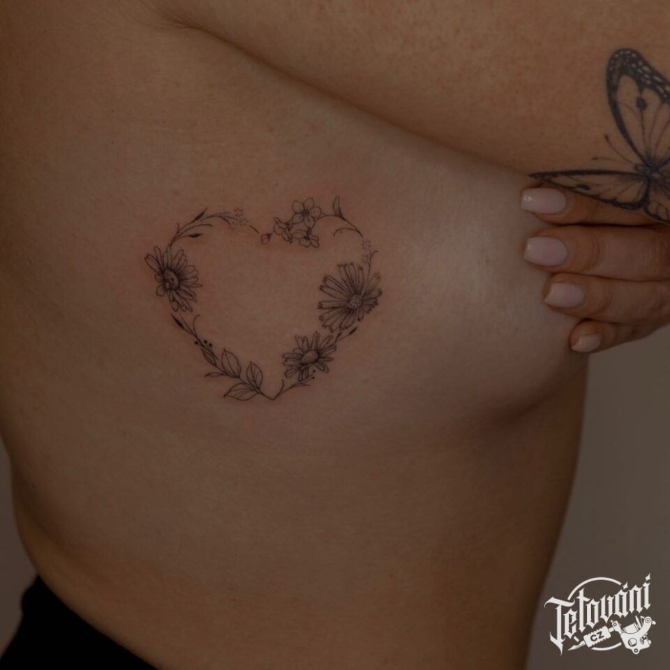 Tetování květinové srdce na žebrech