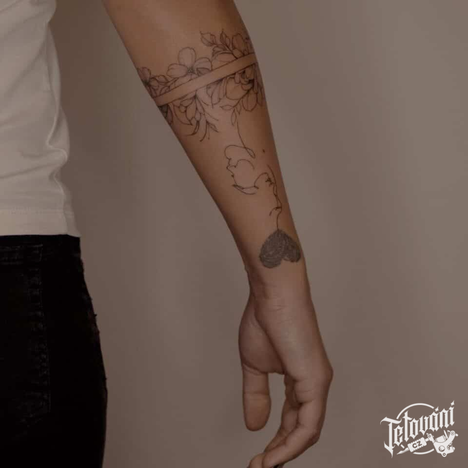 Tetování květinový náramek na předloktí