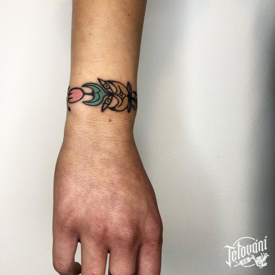 Tetování květinový náramek na zápěstí