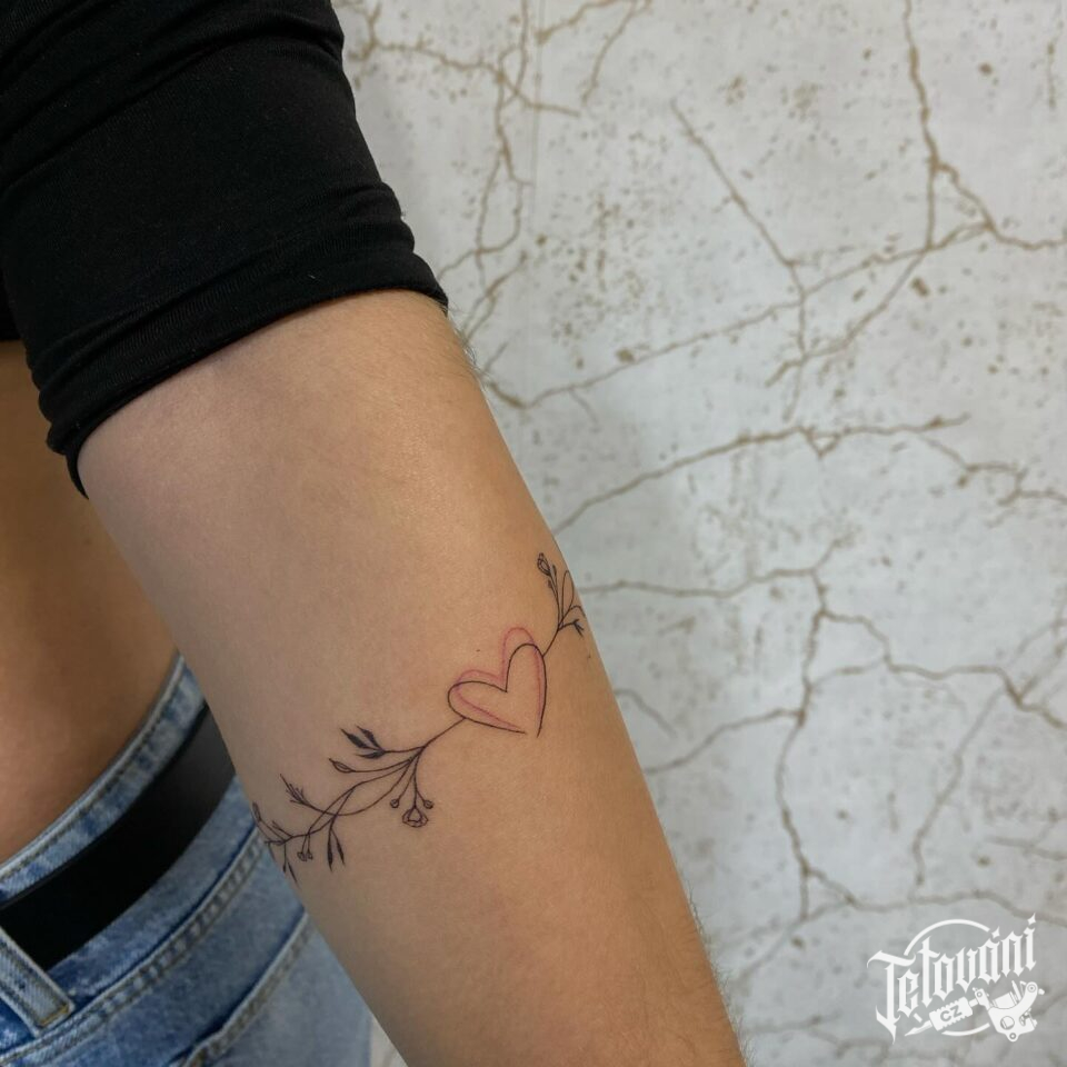 Tetování květinový náramek se srdcem kolem ruky na předloktí