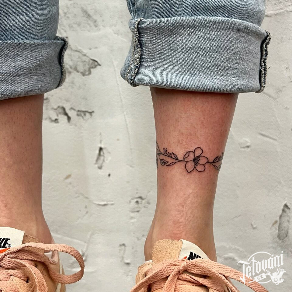 Tetování květinový náramenk na noze