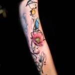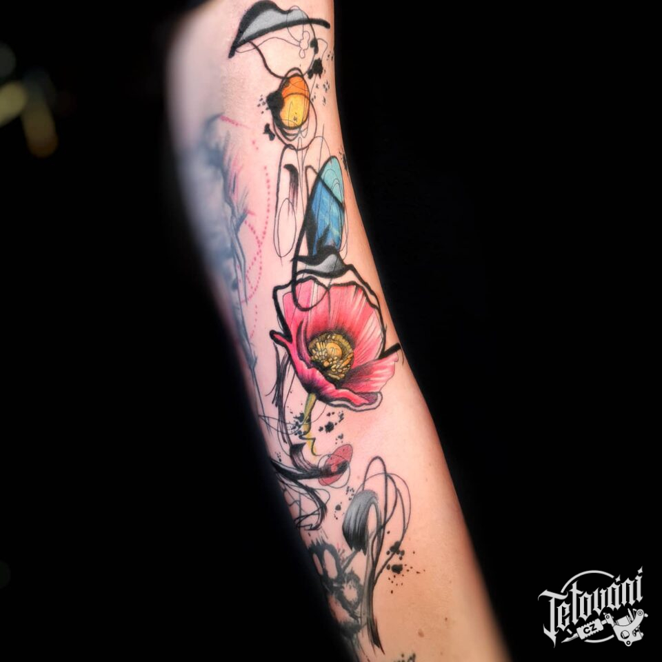 Tetování květiny a abstraktní čáry na rukáv