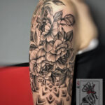 Tetování květiny a mandala na rameni