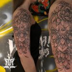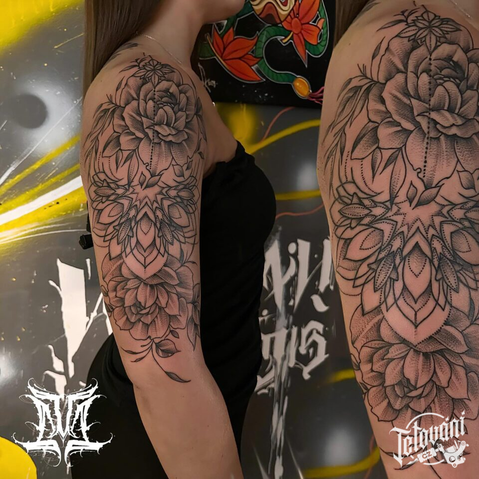 Tetování květiny a mandala na rameno